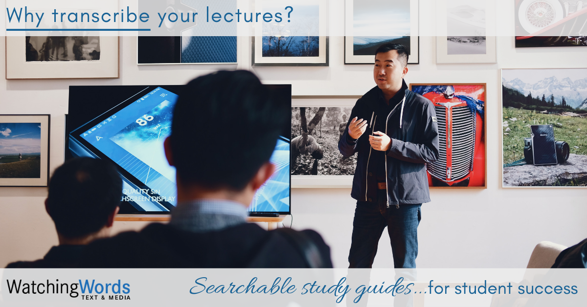 Providing transcripts of lectures, seminars, and other classes sets your students up for success, and provides a valuable resource for instructors.